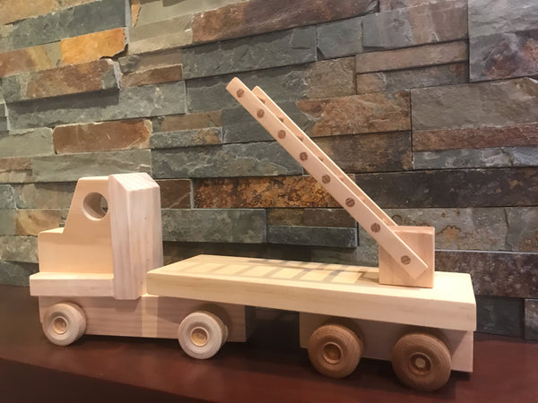 This hook and ladder was expertly designed and constructed by Dale Nichols.  Moving ladder and wheels that turn will make this fire engine a favorite with toddlers!